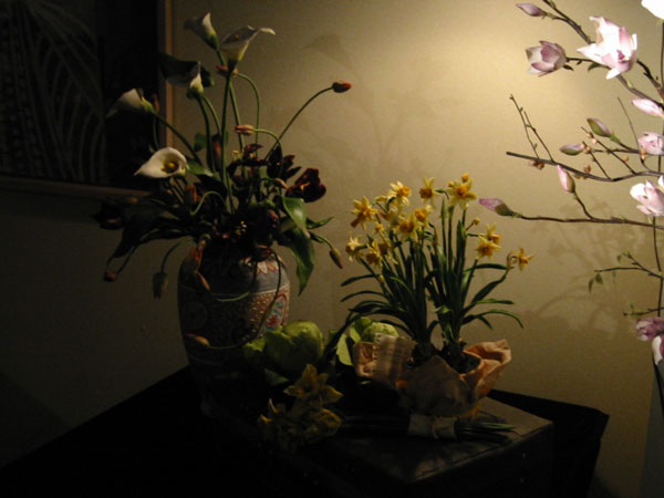 | 今日は森岡先生(私のパンフラワーの先生)のお別れ会だった。13年間ドイツにいわゆる駐妻として、滞在されていた間に、今までにない斬新なテクニックを駆使されて、単なるパンフラワーではなくご自身のARTを完成された方で、私の人間的にも大変尊敬している方々のうちのお一人だ。Gracilis(ラテン語で優美、典雅)と、名づけられたとても人工の華花とは思えない精巧かつ優美、本物を越えた一瞬の美の凝縮、これが森岡先生の真髄だが、私が初めて展示会で作品を見せていただいたとき、感動して鳥肌がたったことが、今でもはっきりと感覚として思い出せる。 生花は勿論、はかないところに、良さがあるのだが、瞬間の表情を動かぬ花の中に留めたいという、それとは別な先生の想いは十分に作品に反映されていると、思う。 先生のところで学ばれ、2年間のコースを、続けられた研究生の方々のなかに混ぜていただいて、私は単なる出来の悪い生徒であり、ファンのひとりということで、参加させて頂け、アトリエを引き上げれる最後に寄せていただけたのは、とてもラッキーだった。 それまで、趣味なし人間の一人だった私が初めて、ドイツの長い暇な冬を、いかにすごそうかと、考えていたときに、必然が引き合わせてくれたGracilisのコースだったといえる。 帰国なさって1年、アトリエはそのままにして、N先生に譲っていらっしゃったのだが、戻られた福井(北陸)ではこの1年の間に時の人となられていて、NHKをはじめとする各メディアからもひっぱりだこのようだ。 ART空間の(LIVE音楽や、ギャラリー機能が融合した)主催者であられると共に、勿論、Guracilisも平行して教えていらっしゃるらしい。又今回、福井市内にも、jestというART空間を設立された。大活躍で最近はなかなか、お花も作ることが出来ないでいると、おっしゃっていた。http://www.4029.net/jest/ 4時間ほどの間、先生独特のお話が、いつも非常に興味深いのだが、特に今回は、日本語教師研修の時に、日本からいらした講師の清るみ先生と、計らずも同じようなことをお話されたのには、驚いてしまった。 ご自身で極められた方というのは、その経験上から貴重な体験と努力に元ずく膨大な量の試行錯誤がない限り、なにごとも、なしえないということを、よくご存知である!ことが改めて認識された。 今回も、卒業生というか研究生の一人から、チューリーップに関する質問、つまり、どうやったら、そうなるのか?どうやったら、本物の花のようにみえる彩色がなしえるのか?というような質問があった。つまりHOWである。 前回の日本語研修のときも、皆質問の大半は、HOWに関するものだったように思う。 どうしたら、そんな風に、同じようになるのか、できるのか? テクニックに頼るものはテクニックでおぼれてしまうと、私はGUIDINGでも、思っている。 相手によって方法を変えることは必然だと思う。人が相手の場合は、特にそう思う。一般化なんてことは存在しないのだ。 まず、モチベーションがあって、何のため、何を表現したいのかがあって、そのためにはどういう方法が有効か、がその次にある。その有効な方法を見つけるには、膨大な自分自身での試行錯誤を含む時間と失敗の積み重ねをやることは不可欠なのだ。それからようやく自分自身の方法が確立し、つまり、いくら氷山の見えている部分をなんとか、テクニックだけ真似ることができても、それはパンフラワーに関していえば、手芸であって、ARTではない。つまりプロの域に達し様とするなら、まず好きであることが第一条件ではあるが、そこから来るモチベーションが大事。そしていかにしてというテクニックは最後に来る。(そしてテクニックは既にすべてを知っていることが前提で、、。)テクニックだけでは、人は感動しないものだ。何か、ひかるものはその前にある。というようなお話が心に残った1日だった。何でも極めた人はやっぱり、分野は違って、チャラクターも全然ちがうのに、考えることはいっしょなんだ〜と思った次第。何でも自分自身の努力試行錯誤が大事なんですね。そんな簡単に考えて誰でも出来たら、そこらじゅう、天才だらけだわさ。きょうも、勉強になった1日でした。 |