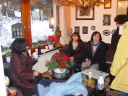 | あいにくの小雨模様だったが、幸いにも2日前までの凍えるような寒さは峠を越したのか、何となく生暖かささえ感じさせる日だった。思惑とは違い結局総勢13人+添乗員の私という大型BUSにはもったいないような人数で催行しなければならなかった。メンバーは13人中9人が現役ガイドの大ベテラン、業界歴20年以下の人は1人のみという最強メンバーで、正直言って添乗員としては一番やりにくい状況に落とし込まれたのか?自分自身で墓穴を掘ったというか、、。ま、ええか〜と気持ちを落ち着けたが、マイクを持つ手はそれでもはっきりと、震えていた。もともとが、こちらに住まわれている駐在員の奥様や、こちらで働いていらっしゃる日本人向けに企画したのに、こんな結果となって、まるで貸切の、ガイドクラブ研修旅行化してしまい、4人の本物??のお客様方にとっては、それでも業界内輪話付きツアーのようで、メリットも少しはプラスされたのではなかろうか?ま、固まったのは私、添乗員のみだった。 |